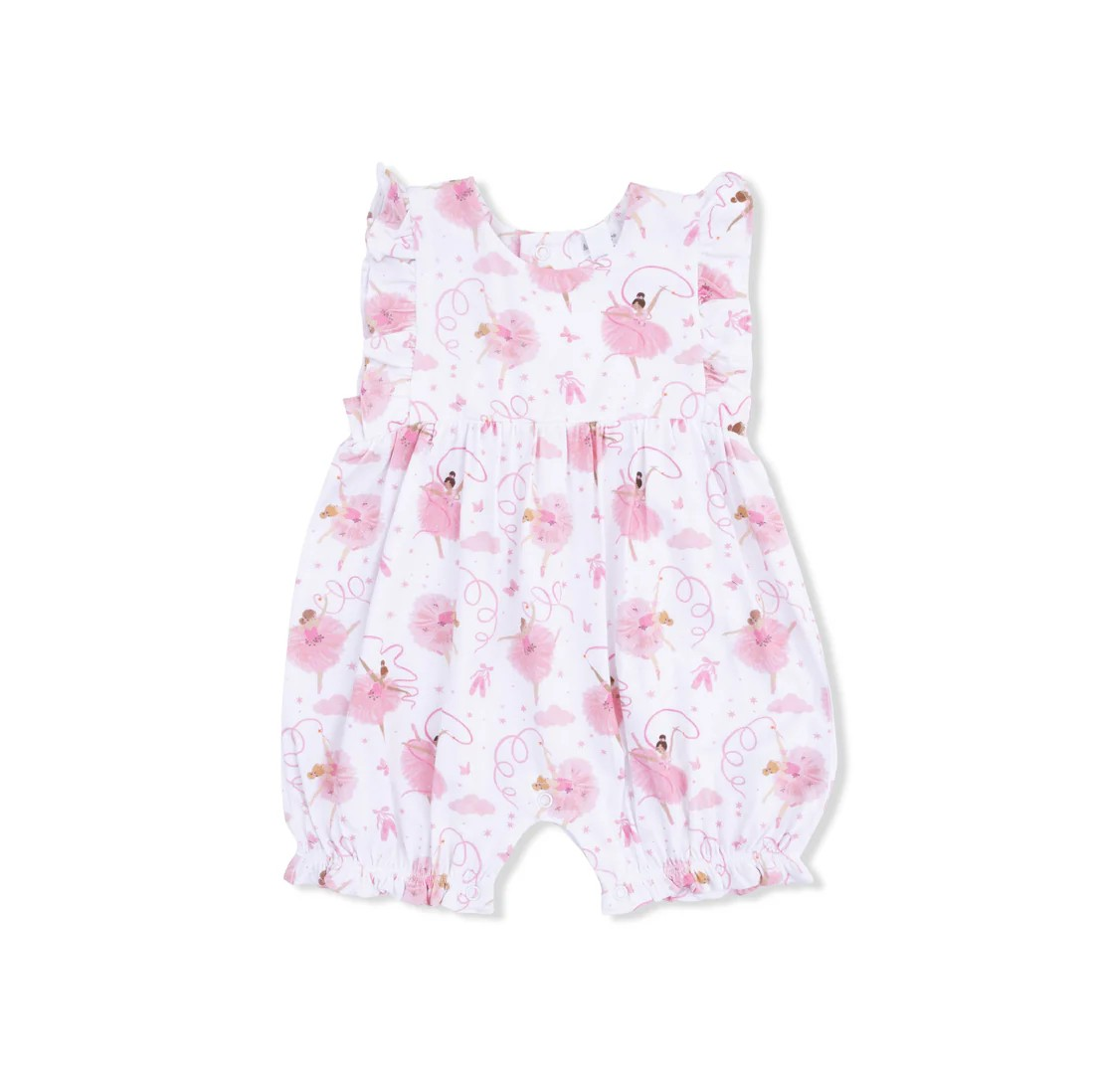 Embrace the joy of spring and summer with the Ballerina Ruffle Romper by Angel Dear! This delightful play suit, adorned with a charming ballerina print, is not only breathable but also designed to keep your little one feeling comfortable and stylish. Its adorable ruffles will make every moment a dance party!