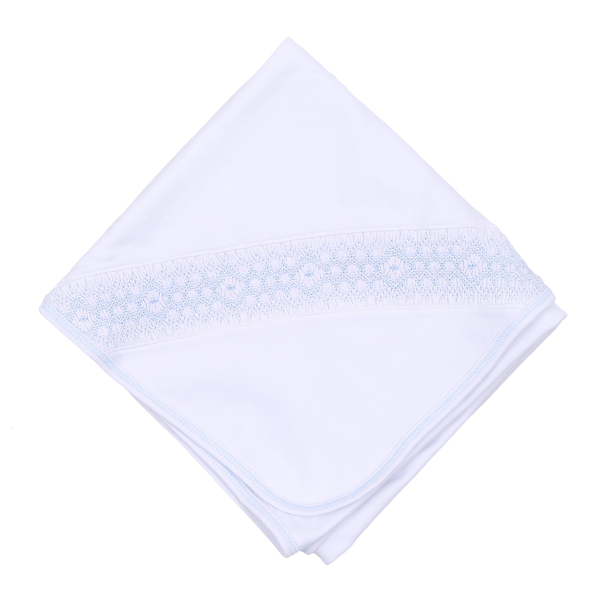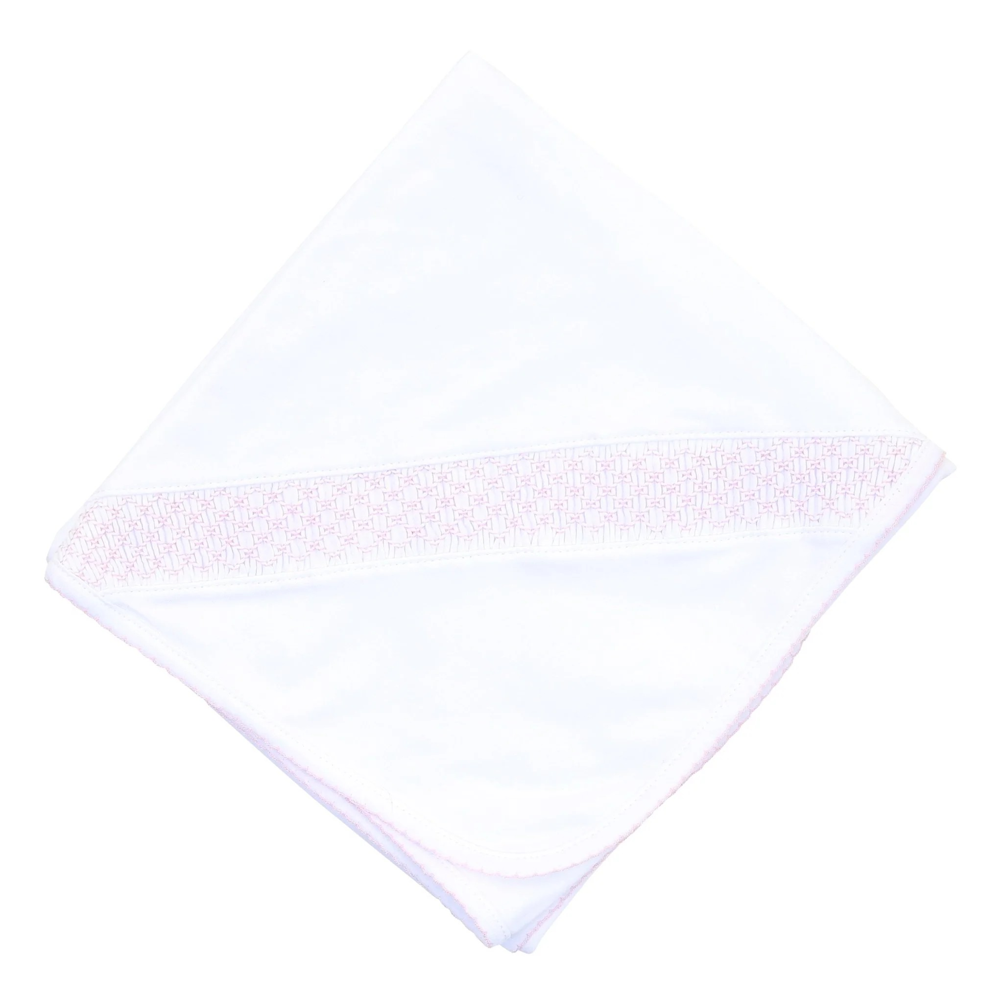 Swaddle your little one in comfort with our Essentials Smocked Blanket with Pink or Blue Smocked Trim. Inspired by the simple elegance of a new beginning, this blanket is crafted from the softest Pima Cotton and features a charming hand-smocked detail. Its cozy feel and generous size make it perfect for cuddling.