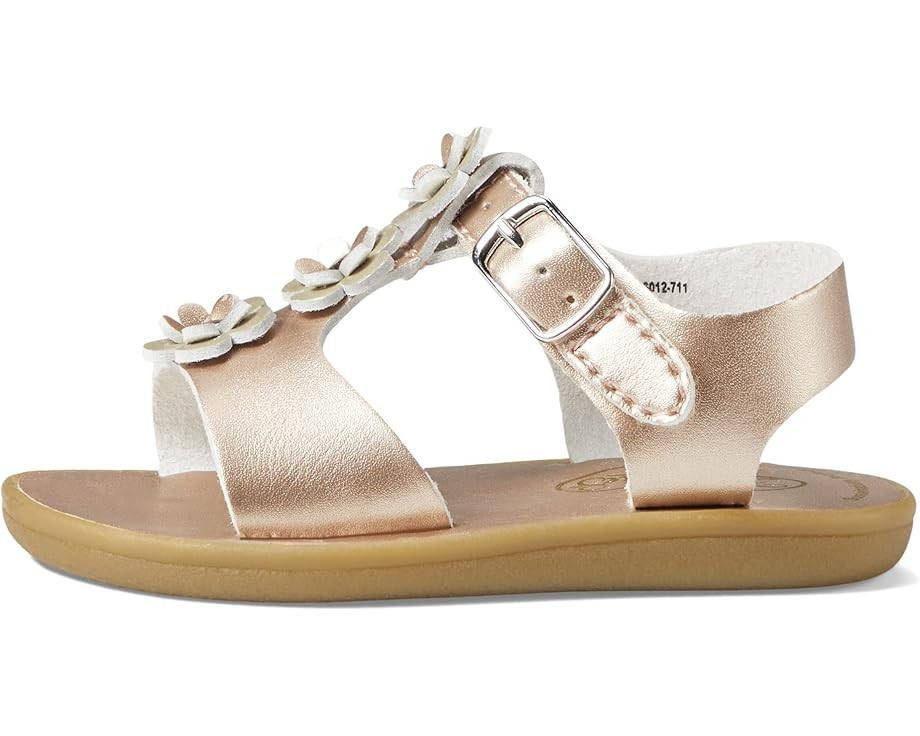 The Footmates Jasmine Sandals are a perfect combination of style and convenience. Made with leather and eco-friendly microfiber uppers, they feature three double-flower appliques for a charming touch. The modern hook and loop straps, with false buckles, not only give the sandals a classic look but also make it easy for your child to put them on and take them off independently.