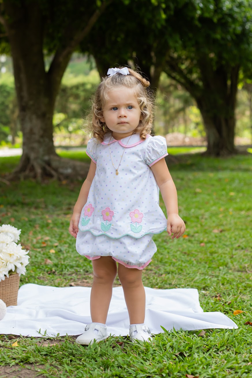 Dress your little one in the adorable Floral Dotted Bloomer Set by Zuccini Kids! This charming outfit features a playful floral design with vibrant multicolor polka dots, making it perfect for spring and summer adventures. Let her bloom in style and comfort all season long!
