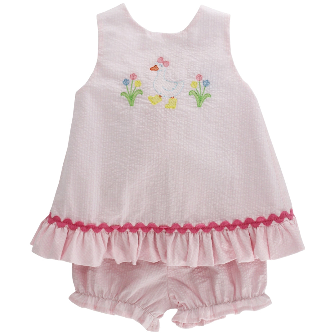 Girls Goose in Boots Short Set from Bailey Boys is a classic and sweet set. This sweet embroidered goose makes this set an adorable addition to any little ones wardrobe. Destined to be a favorite and an heirloom piece with its classic silhouette and pink color!