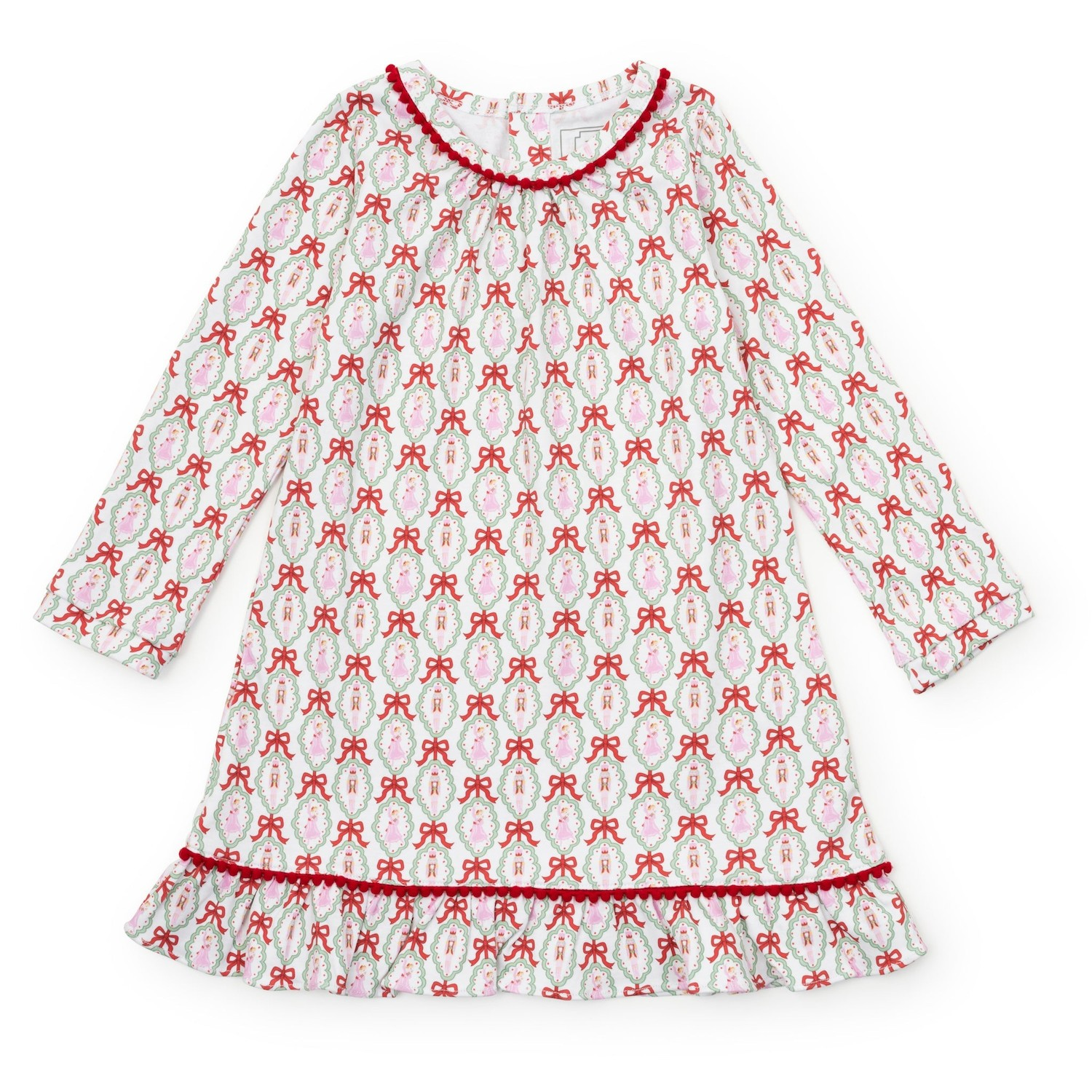 Dress your little one in enchanting elegance with the Carlin Girls' Dress featuring a charming Nutcracker Ballet print from Lila & Hayes. Made from soft, breathable long-sleeve pima cotton, it ensures comfort all day. The flutter ruffle hem and delicate pom pom trim add playful details, while the button closure at the back makes dressing effortless. Perfectly pairs with the matching Doll Dress for an adorable coordinated look that captures the magic of the season.