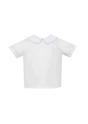 Angelica Boy Short Set from The Proper Peony. Traditional white and red for Christmas is always a proper selection! Hand-embroidered accents are sophisticated and classic. Matching sibling outfits available!