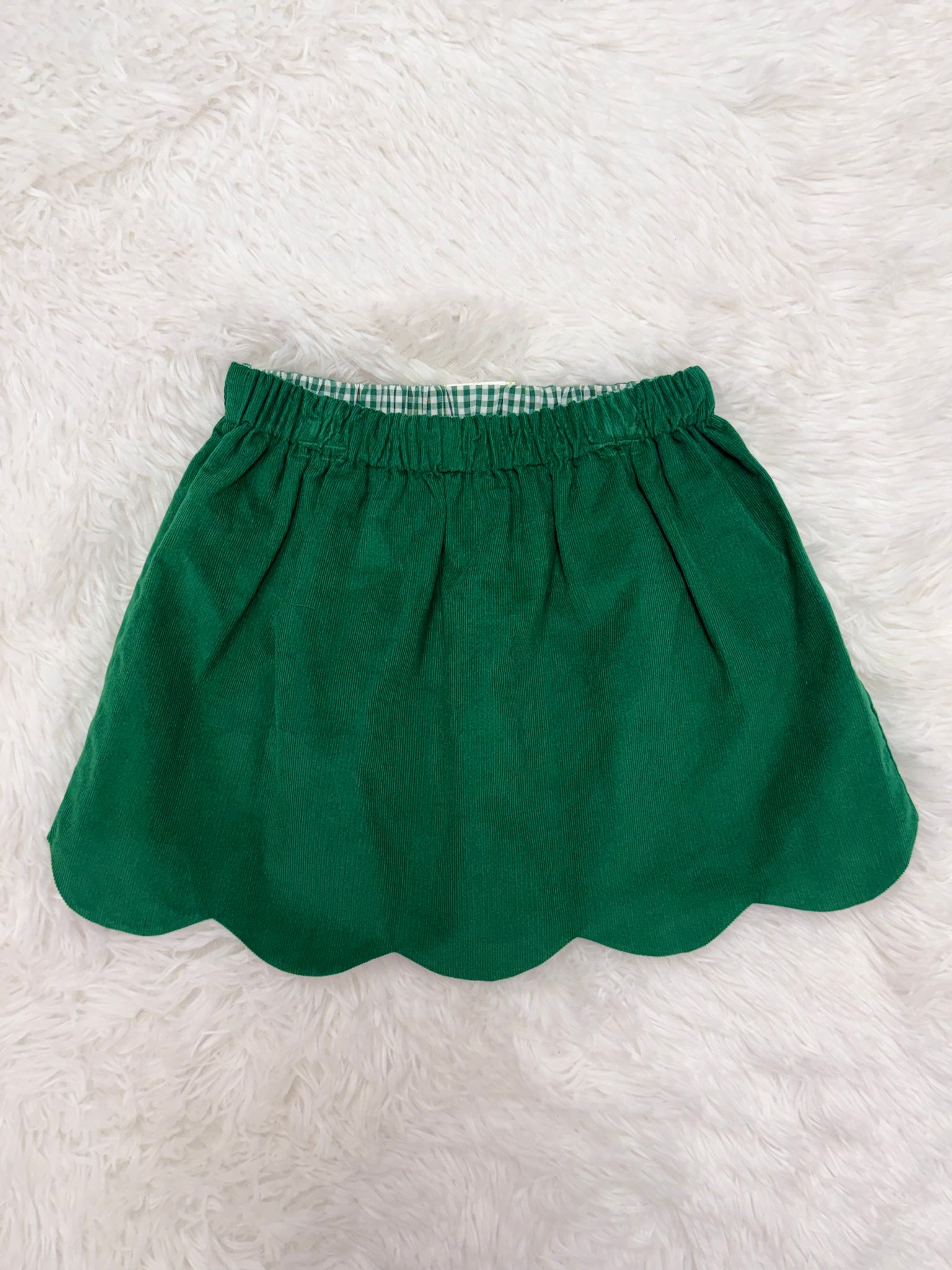 Celebrate the season in style with the Girls Kendall Christmas Tree Corduroy Skirt from Zuccini Kids. Crafted from soft, durable corduroy, this skirt offers both comfort and festive charm. Its adorable Christmas tree design adds a playful holiday touch perfect for family gatherings or seasonal parties. Pair with the coordinating Scalloped Collar Blouse. Reversible skirt with green & white gingham on flip side.