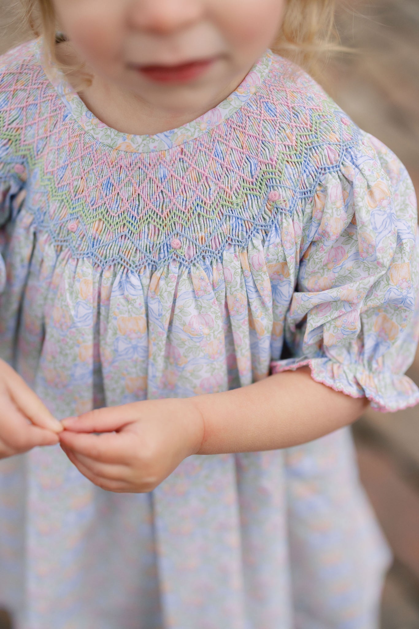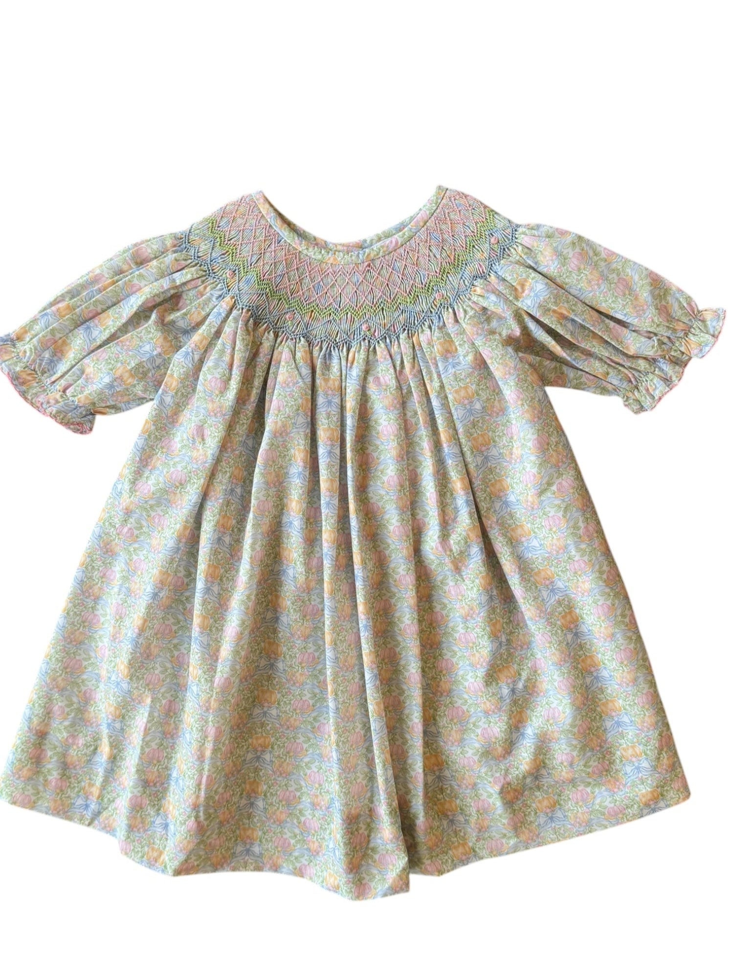 Smocked Pumpkin Floral Analisa Bishop Dress
