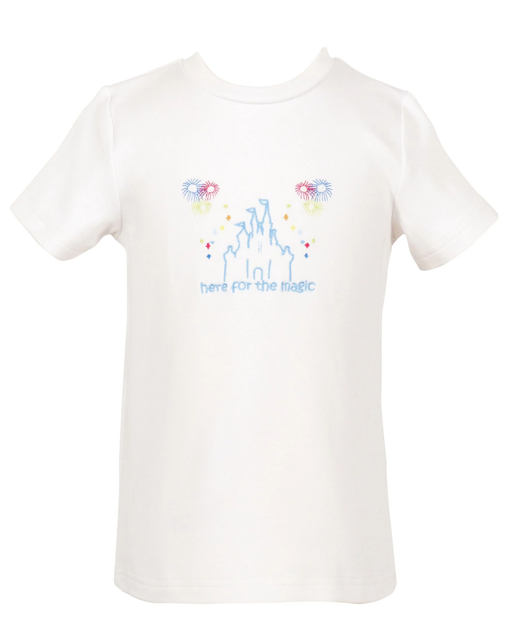 Experience magical comfort and cuteness with our "Here For The Magic" Short Sleeve Tee! Made from a bamboo blend knit, this shirt is perfect for any Disney trip and will quickly become his favorite. Don't miss out on this extra adorable and comfortable addition to his wardrobe.