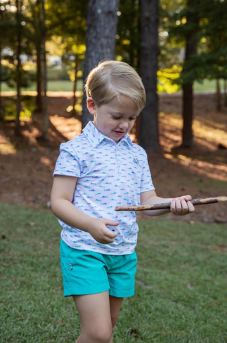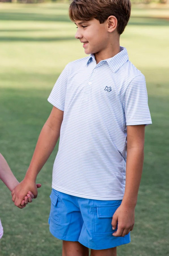 Boys Prim & Proper Polo- Nantucket Navy Stripe