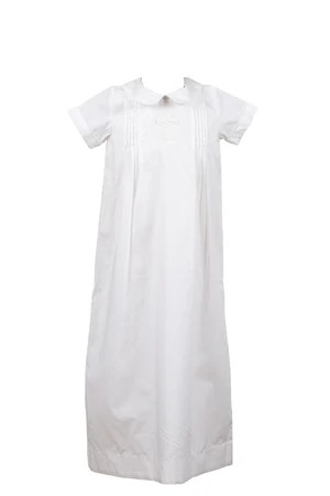 The Proper Peony baptism gown is simple and beautiful. A classic look for any baptism occasion, gown features a hand-sewn cross on the chest in white. Lined and buttons on back.