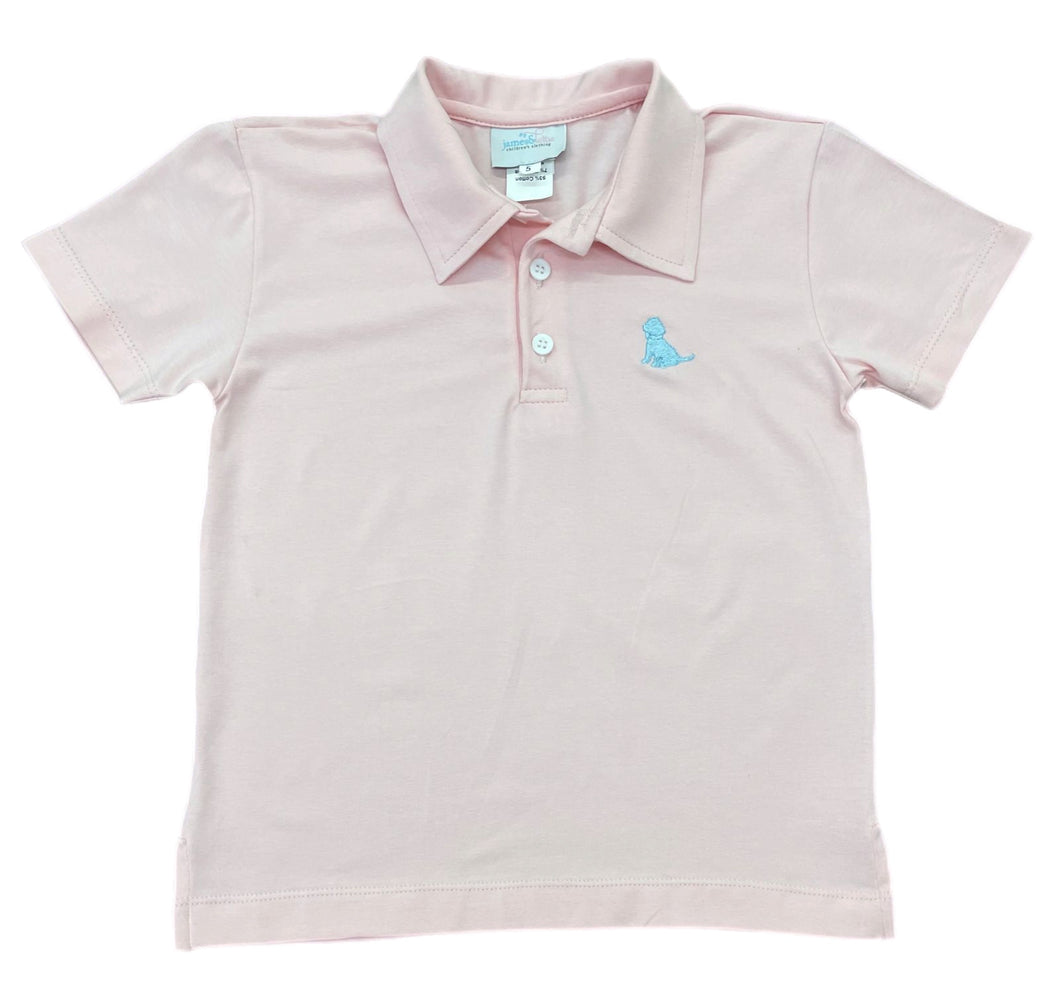 Get your little boy ready for Spring with this Boys Pink Polo featuring a cute blue puppy from James & Lottie. Made for toddler boys, it pairs perfectly with the Boys Pastel Plaid Conrad Shorts for a stylish and adorable outfit. Perfect for any Easter celebration or casual day out!