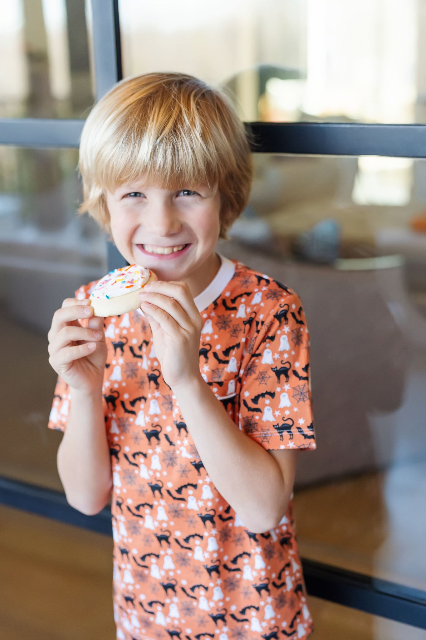 Get your little man ready for Halloween with our Charles Short Set! This adorable pajama set is perfect for the spooky season, featuring a cute Halloween design that your boy will love. Made with comfort in mind, this set is perfect for a cozy night's sleep.