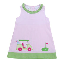 Let your little golfer shine in this adorable seersucker dress from Zuccini Kids. Featuring charming golf cart and flag appliques, this dress is perfect for the green. The ruffled collar adds a touch of sweetness. Available for toddler girls.