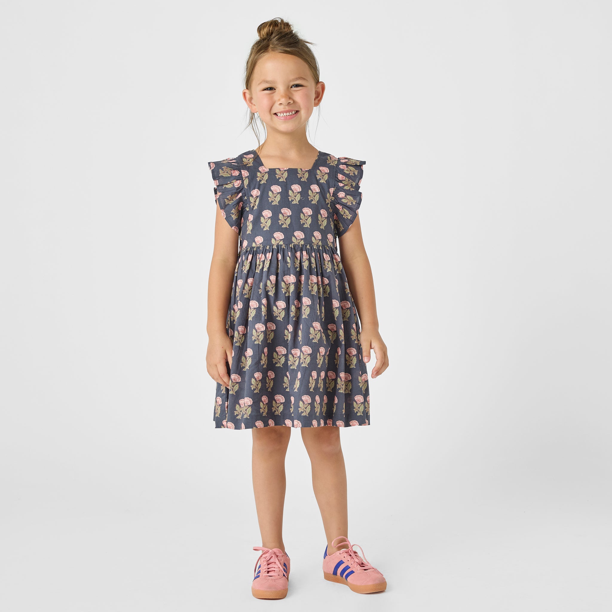 Get ready for spring with our Navy Flower Elsie Dress from Pink Chicken! Perfect for tween girls, this dress features a beautiful sleeveless floral pattern over a classic navy background. With charming ruffle sleeves, this dress will add a touch of elegance to any occasion.